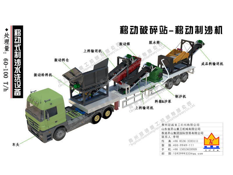 移動(dòng)破碎站-每小時(shí)60-100噸處理量移動(dòng)式制沙水洗設(shè)備